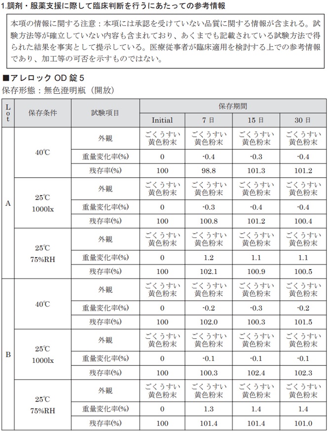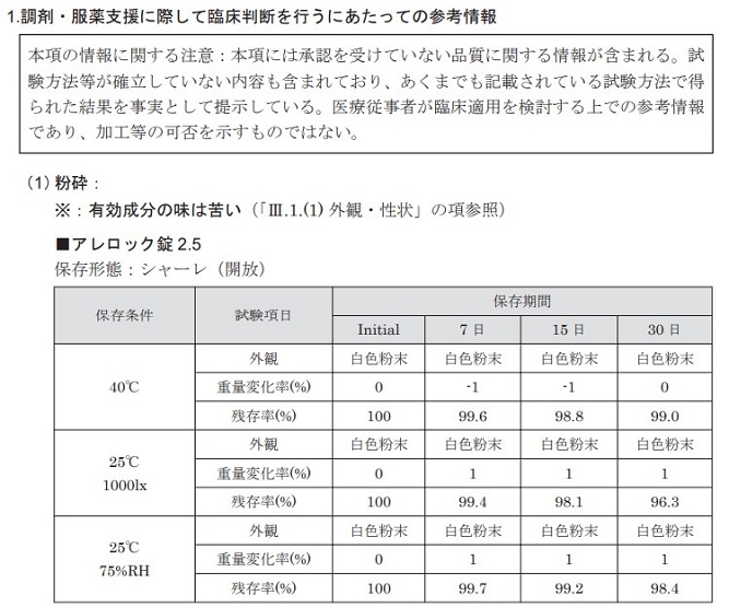 アレロック錠を粉砕したときの安定性データはありますか?