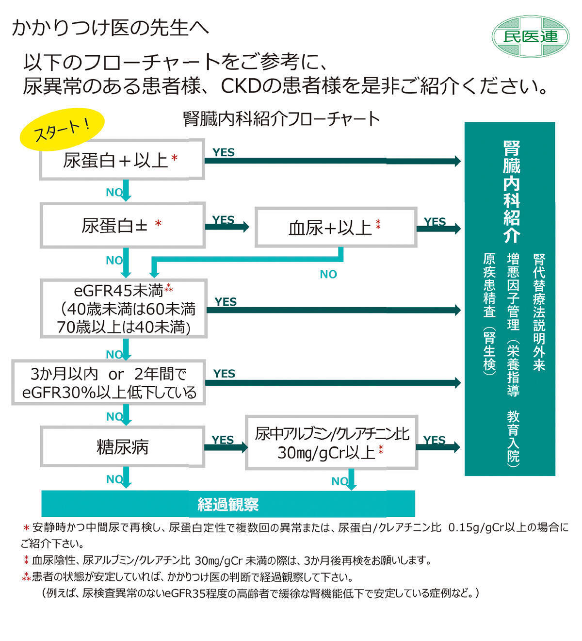 このフローチャートは、病院公式ホームページの腎臓内科の項で公開されており、自由にダウンロードできる