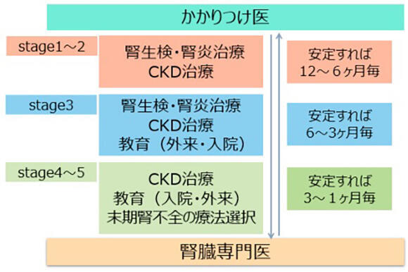 かかりつけ医との併診をスムーズに行えるようCKD地域連携パスで腎臓専門医が担当する診療内容を見える化している
