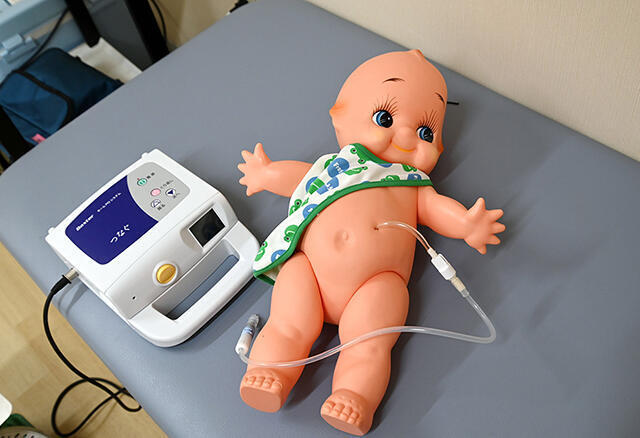 腹膜透析を選択した人には外来通院中から人形などを使って手技の指導を始める。具体的にイメージできることで導入がスムーズになる